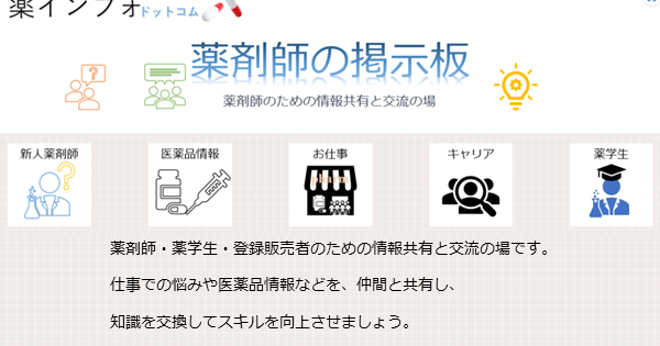 カテゴリー・トピック一覧 2023.12.03 カテゴリー 検索: フォーラム トピック 投稿 最新の投稿 お仕事 仕事上の悩みなどを相談する場です。 1 1 2年、 1ヶ月前 イブ雷光 キャリア 就職や転職などキャリアに関することを相談する場です。 1 1 2年、 1ヶ月前 イブ雷光 医薬品情報 添付文書から論文まで医薬品情報を相談・交換する場です。 1 1 2年、 1ヶ月前 イブ雷光 新人薬剤師 1年目~3年目程度の薬剤師が悩みを相談する場です。 1 1 2年、 1ヶ月前 イブ雷光 薬学生 学業や将来像を相談する場です。 1 1 2年、 1ヶ月前 イブ雷光 最新のトピック 検索: 5件のトピックを表示中 - 1 - 5件目 (全5件中) トピック 返信 投稿 最新の投稿 薬剤師の就職で重視することは? トピック作成者: イブ雷光 フォーラム: キャリア 1 1 2年、 1ヶ月前 イブ雷光 上手に内服できないお子さんへの対処は? トピック作成者: イブ雷光 フォーラム: 医薬品情報 1 1 2年、 1ヶ月前 イブ雷光 仕事上で悩んだこと トピック作成者: イブ雷光 フォーラム: お仕事 1 1 2年、 1ヶ月前 イブ雷光 実習先で悩んだこと トピック作成者: イブ雷光 フォーラム: 薬学生 1 1 2年、 1ヶ月前 イブ雷光 働いてから気づいたこと トピック作成者: イブ雷光 フォーラム: 新人薬剤師 1 1 2年、 1ヶ月前 イブ雷光 5件のトピックを表示中 - 1 - 5件目 (全5件中) 人気のトピック 5件のトピックを表示中 - 1 - 5件目 (全5件中) トピック 返信 投稿 最新の投稿 薬剤師の就職で重視することは? トピック作成者: イブ雷光 フォーラム: キャリア 1 1 2年、 1ヶ月前 イブ雷光 上手に内服できないお子さんへの対処は? トピック作成者: イブ雷光 フォーラム: 医薬品情報 1 1 2年、 1ヶ月前 イブ雷光 仕事上で悩んだこと トピック作成者: イブ雷光 フォーラム: お仕事 1 1 2年、 1ヶ月前 イブ雷光 実習先で悩んだこと トピック作成者: イブ雷光 フォーラム: 薬学生 1 1 2年、 1ヶ月前 イブ雷光 働いてから気づいたこと トピック作成者: イブ雷光 フォーラム: 新人薬剤師 1 1 2年、 1ヶ月前 イブ雷光 5件のトピックを表示中 - 1 - 5件目 (全5件中)